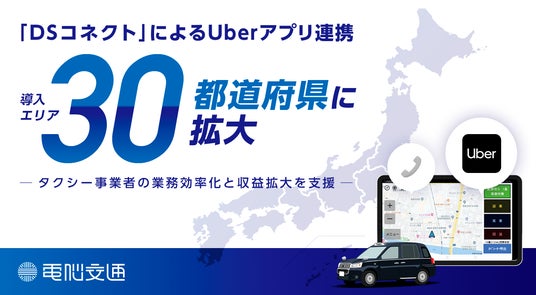 タクシー業界のDXを推進する株式会社電脳交通(本社:徳島県徳島市、代表取締役社長:近藤 洋祐、以下「電脳交通」) は、電脳交通のクラウド型タクシー配車システム「DS」とタクシーアプリ「Uberアプリ」のシステム連携の導入エリアが、2025年10月30日に30都道府県に拡大したことをお知らせします。