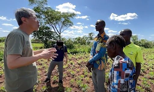ウガンダの農家の畑を訪問、栽培の現状などをヒアリング=2024年4月