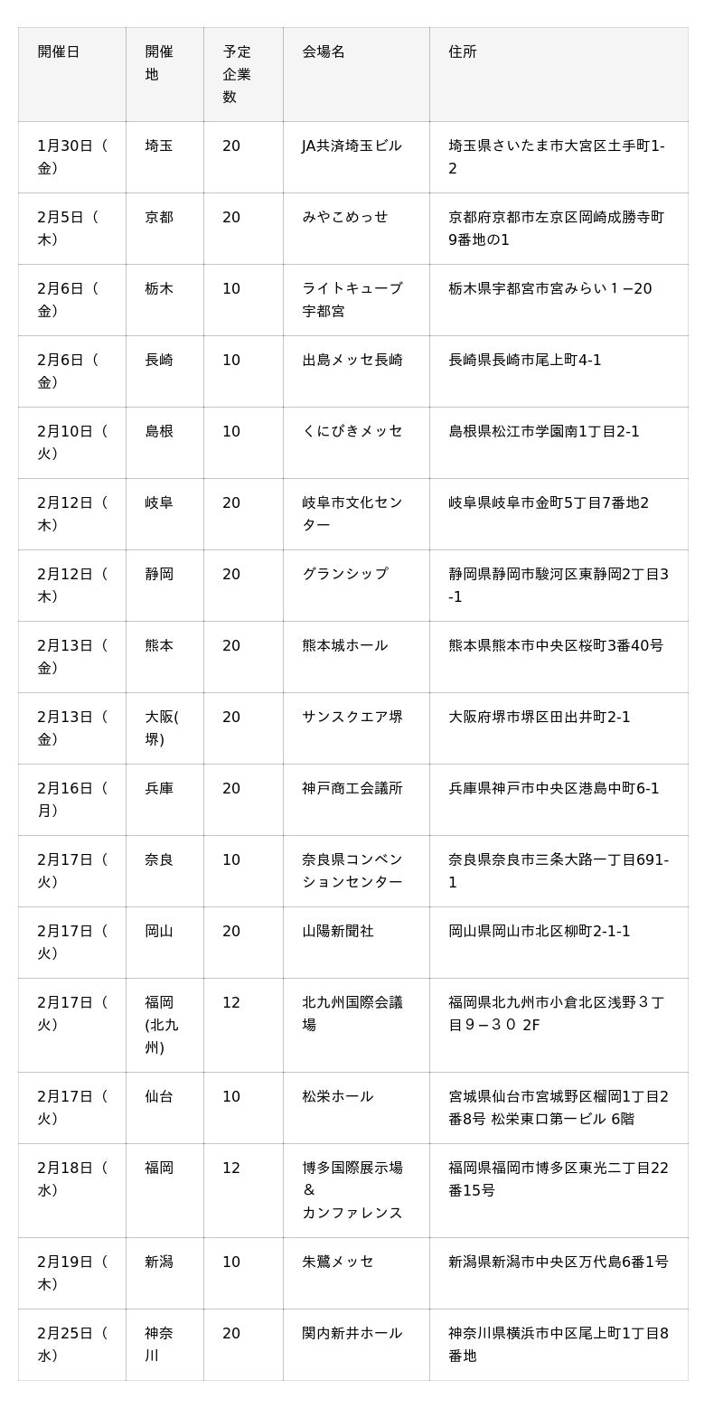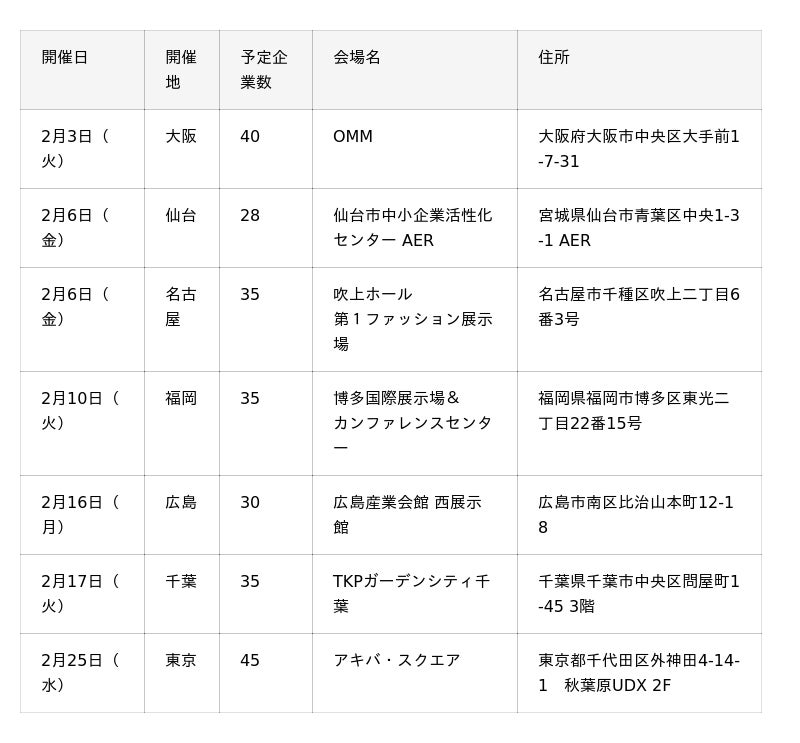 過去実績:2024年2月に16会場、9月5会場で開催、251社の企業と、353校の先生が参加。