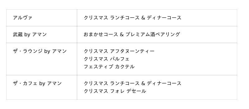 アマン東京 フェスティブシーズンメニューのご案内