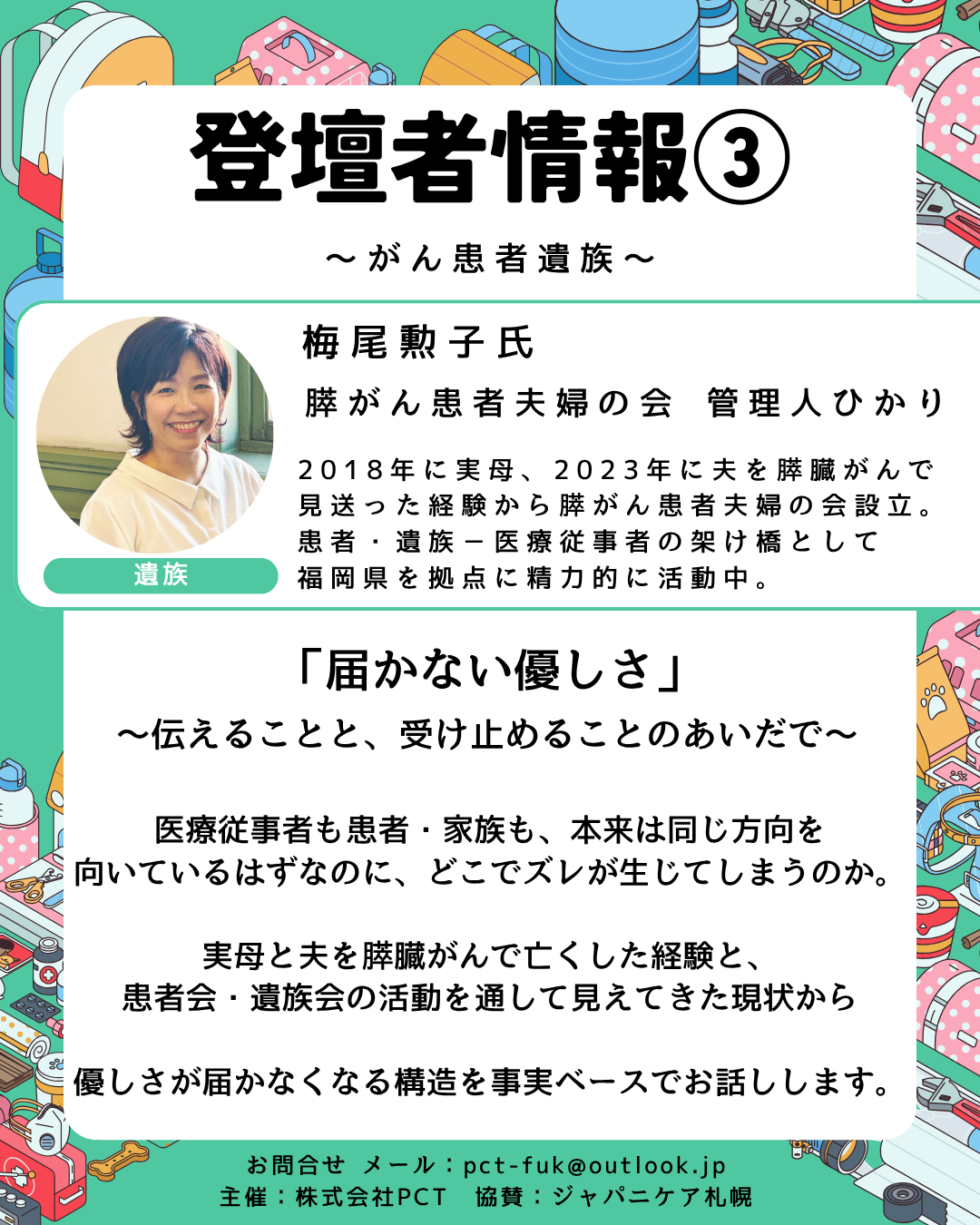 「看護の原点に立ち返る日」看護師×がん患者×膵臓がん遺族が集う緩和ケアセミナーin博多、2025年12月13日(土)開催