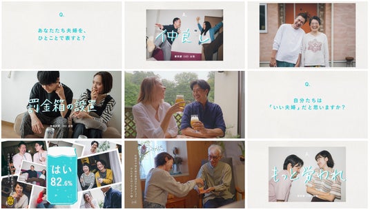 「いい夫婦」にちなみ、1122名の夫婦に回答していただいた調査結果を基にした、実際の夫婦たちが出演する動画「どう?夫婦 いい?夫婦」Special Movieを11月21日(金)AM10:00より、公式Xおよび公式YouTube上にて公開します。夫婦の回答とともに、ベランダでまったりくつろぐ姿や、仲良く晩酌をする姿など、飾らない日常の中に存在する二人の幸せを描きました。