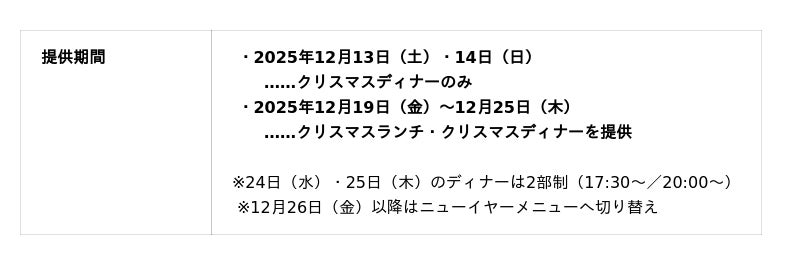 【2025年 クリスマスメニュー概要】