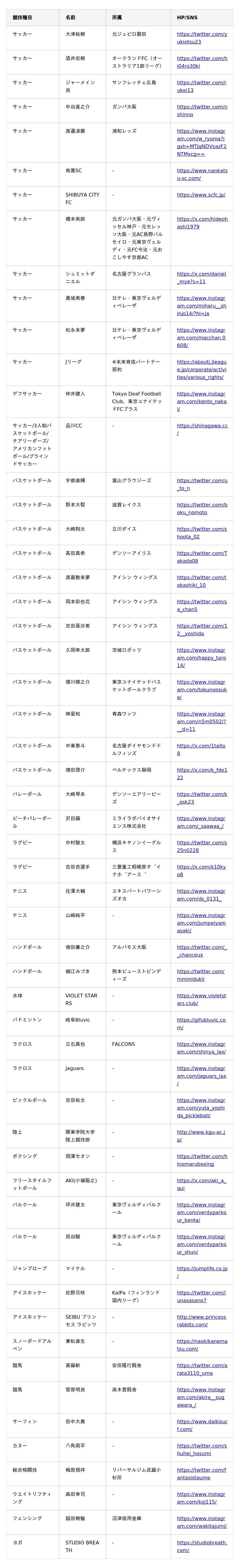 <BASE UP SPORTS サプライヤー契約一覧(現時点)>