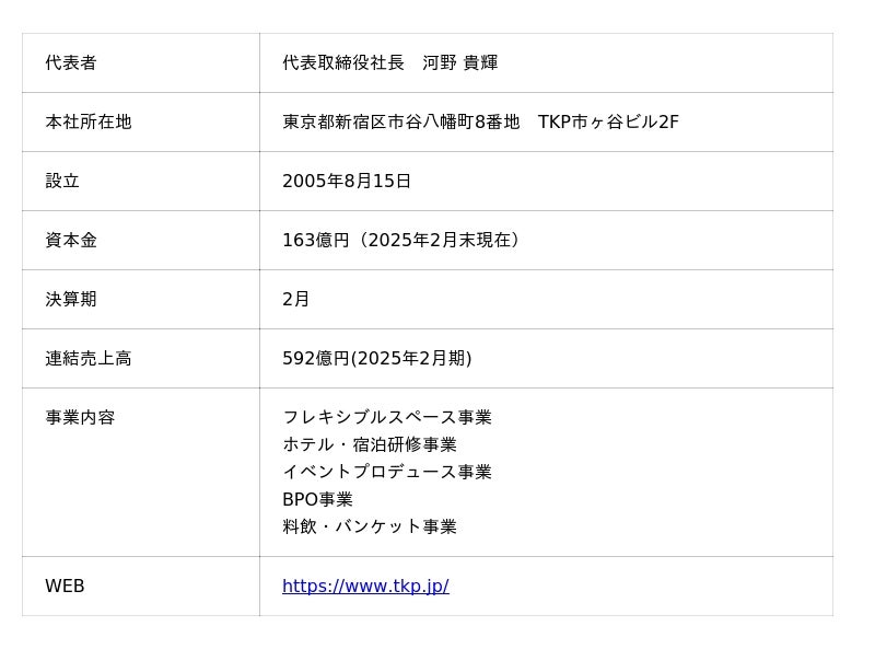 詳細につきましては、株式会社ティーケーピーの下記施設情報サイトをご覧ください。
