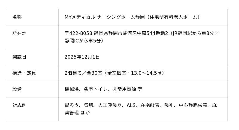 【2025年12月1日開設】ホスピス型住宅「MYメディカル ナーシングホーム静岡」静岡市駿河区中原にオープン