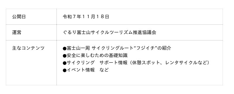 このたび、サイクリストの皆さまに向けて、ルート情報や安全に楽しむための基礎知識を掲載した公式ホームページ『フジイチ』を開設しましたので、お知らせいたします。