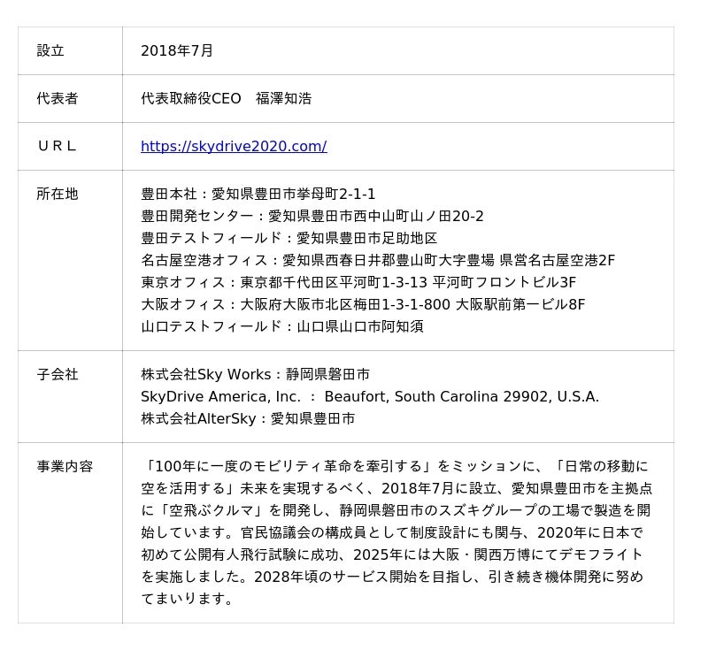 ■株式会社SkyDriveと次世代モビリティ「空飛ぶクルマ」について