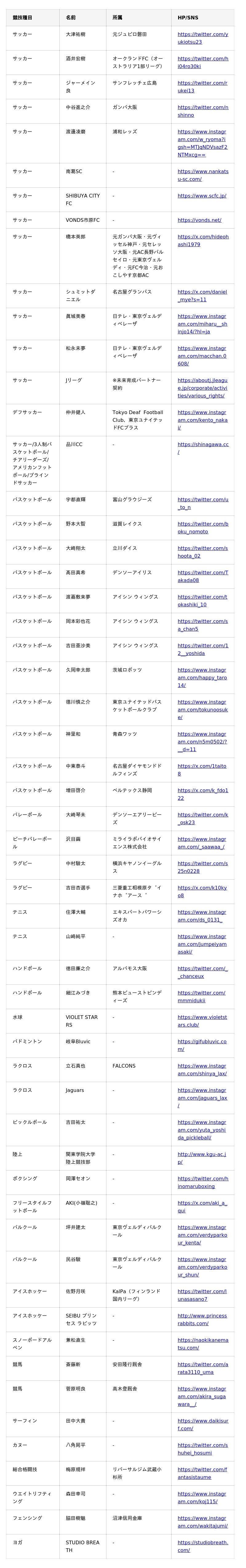 <BASE UP SPORTS サプライヤー契約一覧(現時点)>