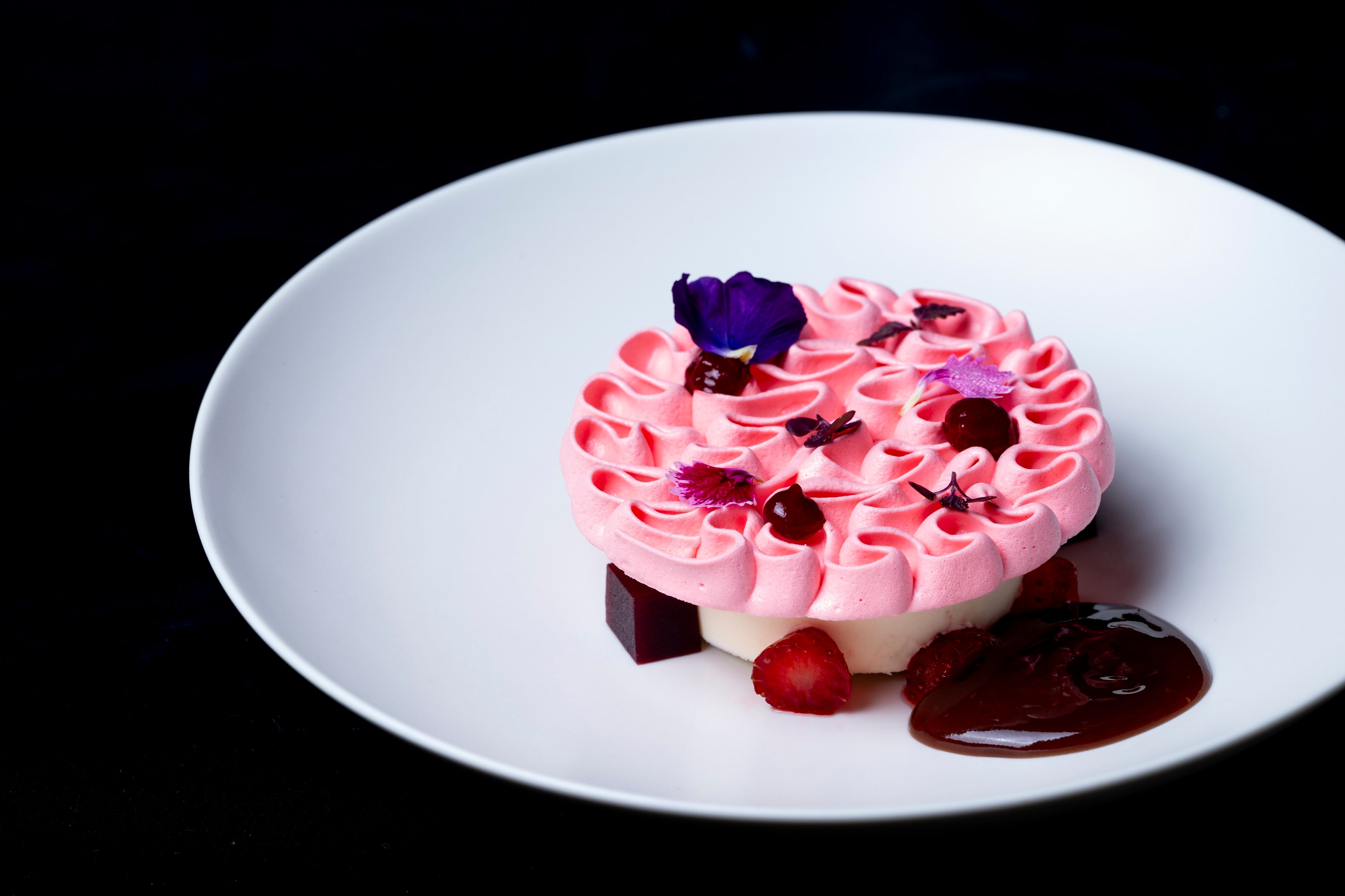 パリの「Restaurant KEI」のシグネチャーデセールのヴァシュランを銀座ヴァージョンで。焼いたメレンゲにクリームやアイスをあわせたフランスの伝統菓子に小林 圭シェフの創造性をプラスし、コースを締めくくるのにふさわしい一品に。