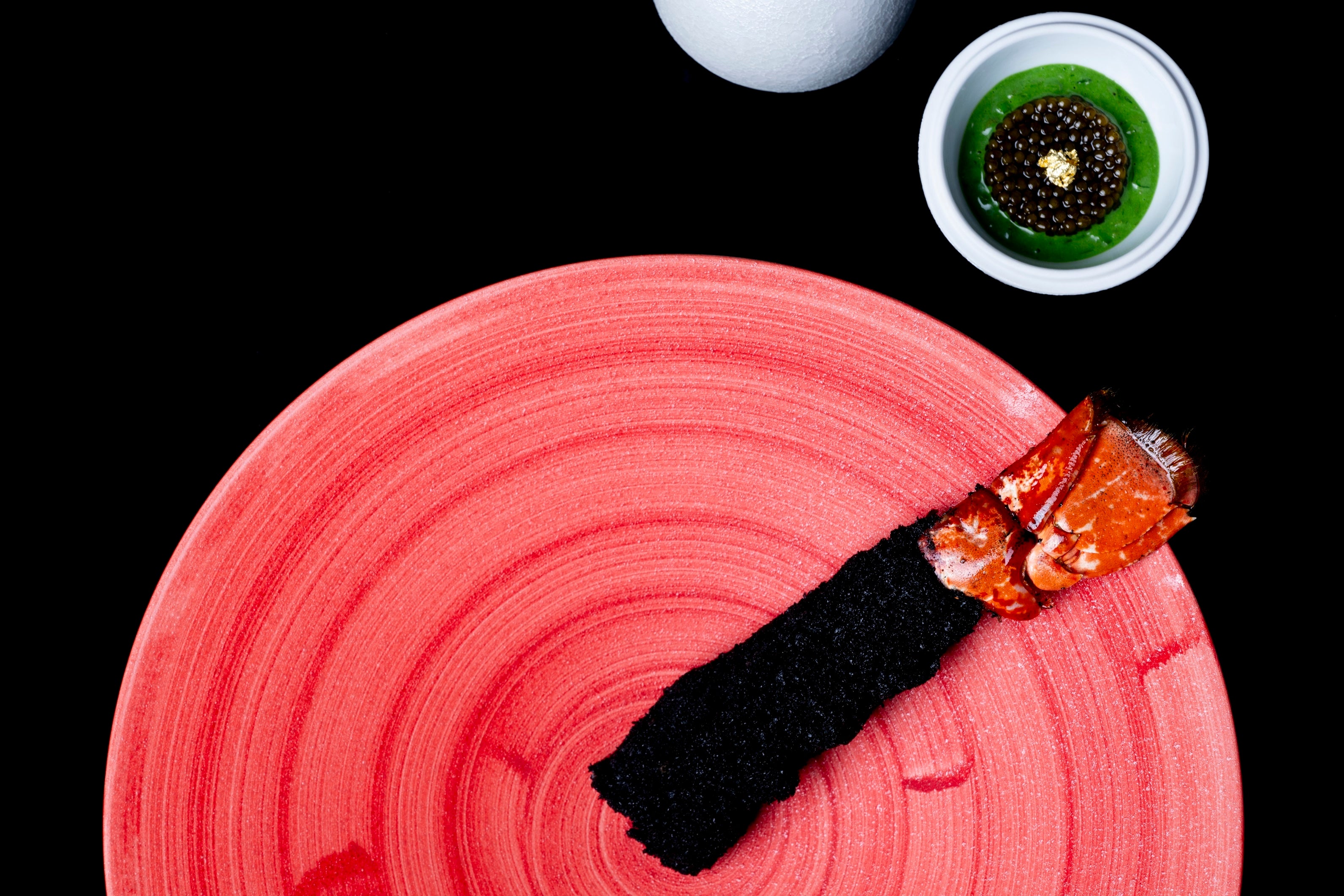 オマール海老はバターでゆっくりとコンフィのように旨みを閉じ込め、最後に藁で香りを纏わせ高温で仕上げます。