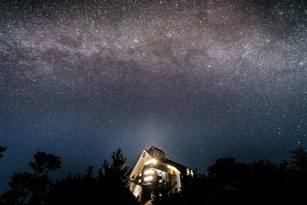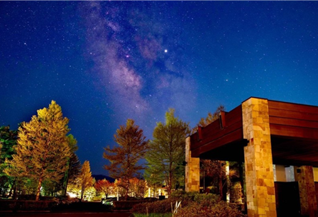 軽井沢エリア(長野県)標高 940m に位置し、都心からのアクセスが良い一方で星空観賞を妨げる街灯が少なく、清澄な空気の中で輝く星空を鑑賞することができます。