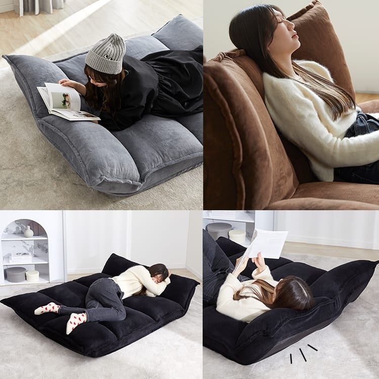 背もたれは42段階、肘掛けは独立した14段階で角度調整が可能。ソファスタイルからフラットまで自在に変形し、読書・動画鑑賞・お昼寝まで幅広いシーンで活躍します。“自分だけのくつろぎポジション”を見つけたい方におすすめの、ロングセラーアイテムです。