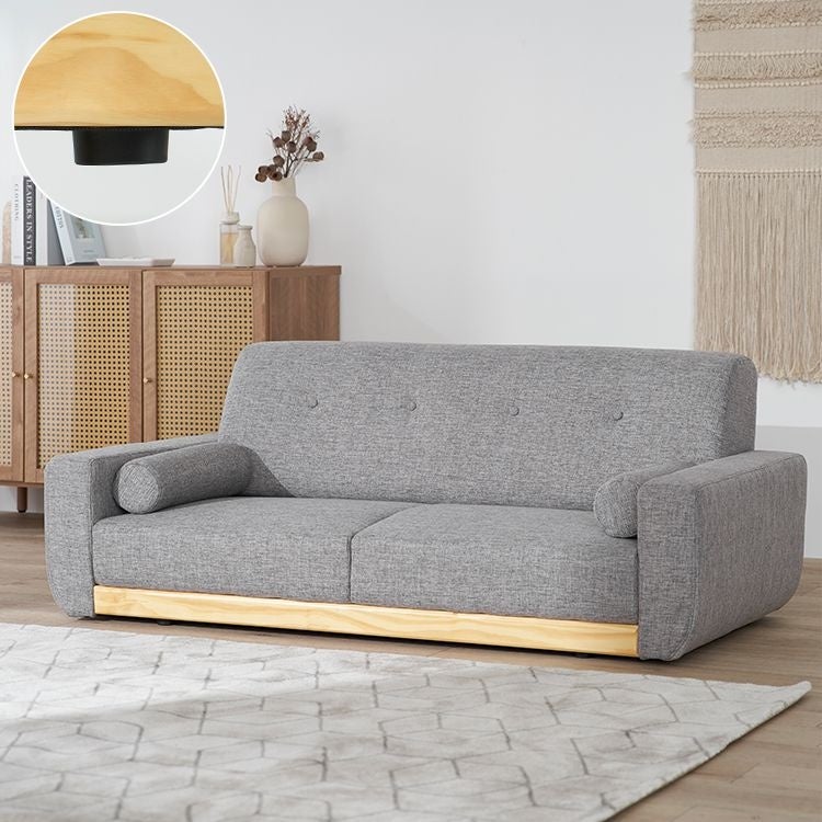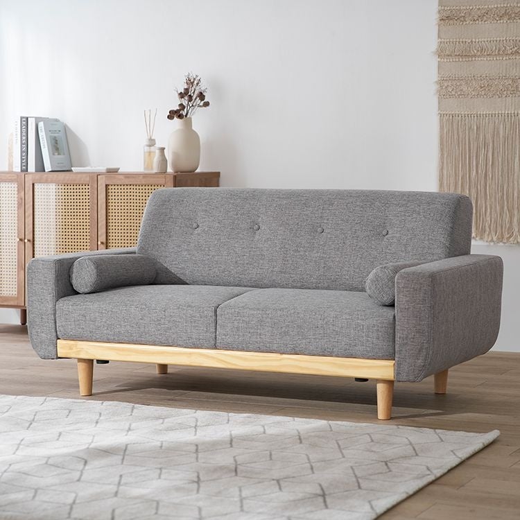 ソファと同じ生地の円柱状のクッション2個がついてくるので、腰当てや肘置きなどアレンジも自由自在。脚を外せばローソファとしても使え、模様替えやライフスタイルの変化にも柔軟に対応できます。