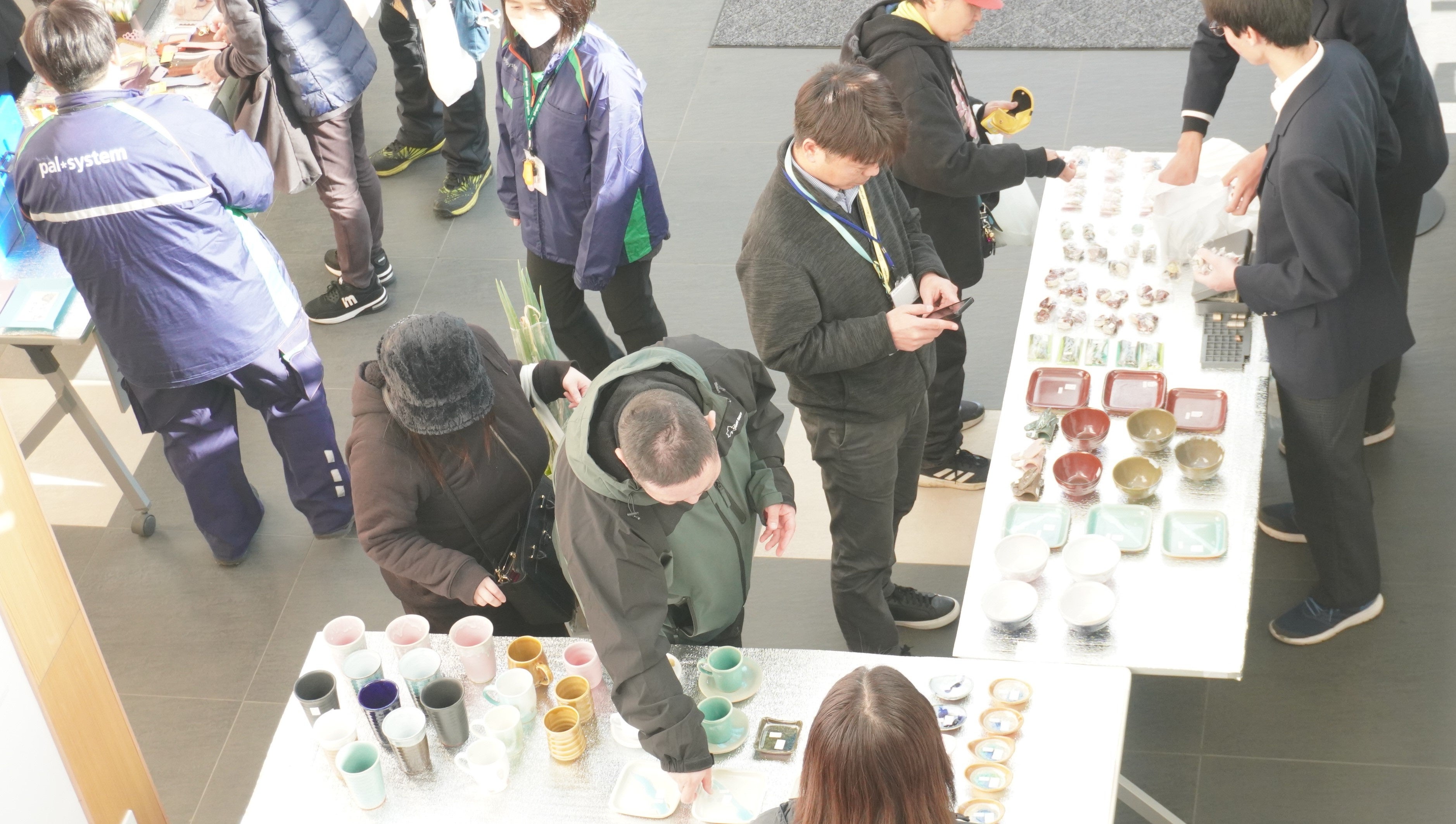 販売会は、宅配商品の個別セットなどを担う熊谷センターで開催します。職員が行き交う1階ロビーを会場に、特別支援学校の授業の一環として制作した陶芸や木工、布革製品、学校の畑で育てた野菜などを販売します。初めて実施した2023年度から3年連続の開催です。