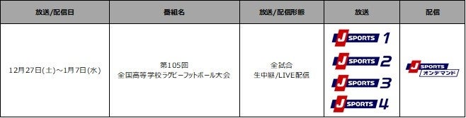 ※放送/配信内容は変更になる場合があります。詳しくはJ SPORTS総合サイト内「高校ラグビー」をご確認ください。