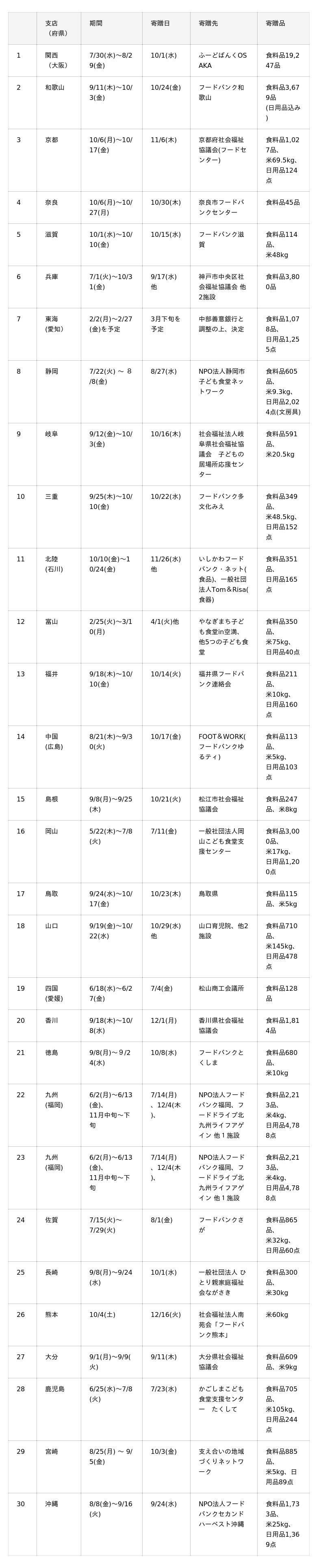 また、各支店ではフードドライブだけでなく、災害時等での利用を想定した備蓄品の寄贈や日用品(文具・衣類・子供用品・生活用品)の寄贈等を含め、地域社会への支援を続けております。