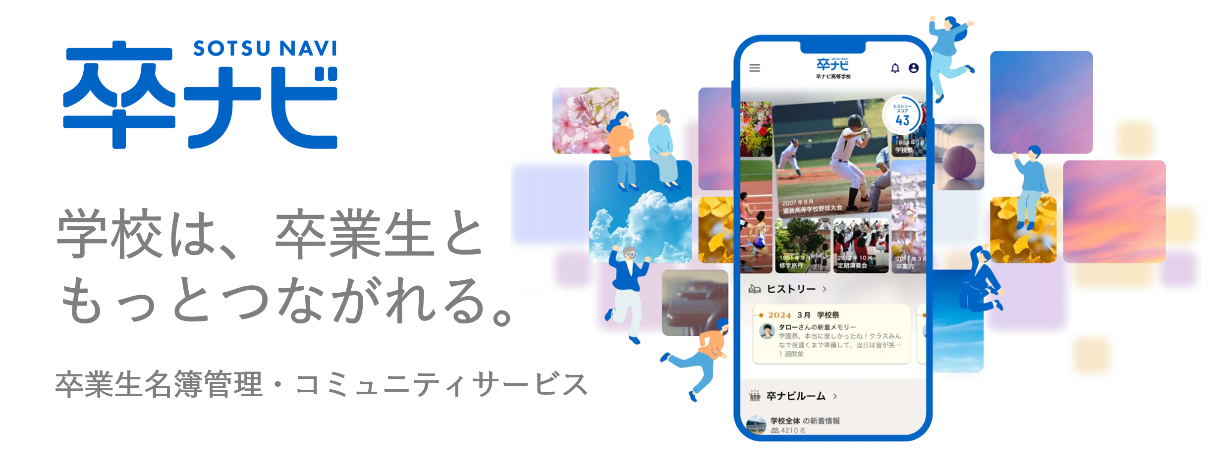 長年、教育機関をサポートしてきた当社のノウハウを活かし、こうした学校現場のお悩みの解消につながるサービスとして「卒ナビ」を開発しました。卒業後も、卒業生と母校の関係を継続させることで、卒業生ネットワークを学校運営の課題解決や教育活動の充実に役立てることが可能です。