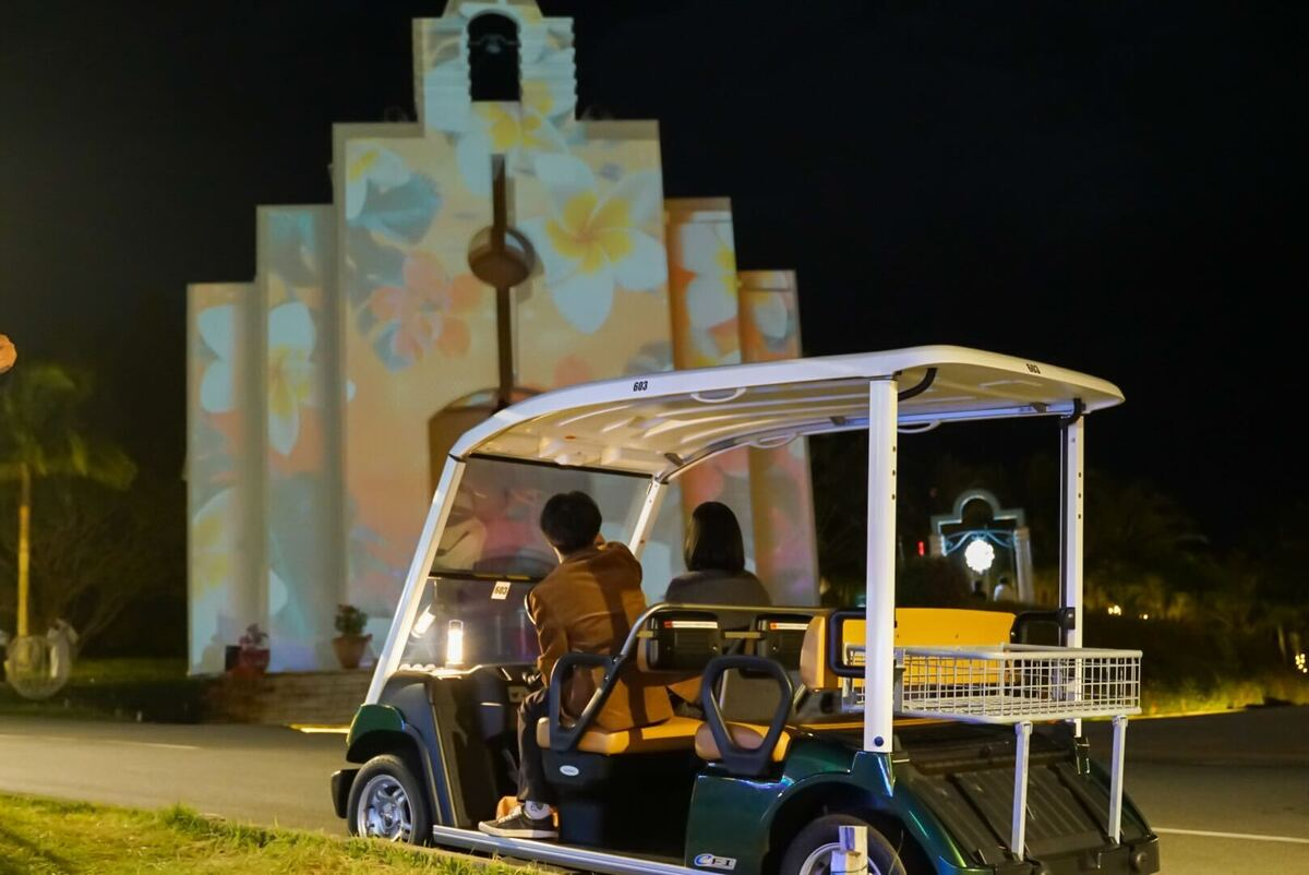 「ルミナスツアー」は音声ガイドに導かれ、カートに乗ってリゾート内を巡る体験型ツアーとなります。