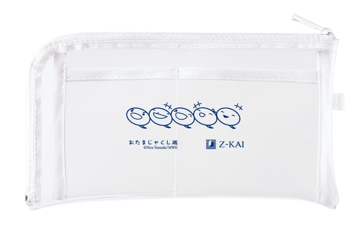 メッシュポケットがついたビニールポーチ。横長のため、ペンケースとしても使えます。Z会オリジナルキャラクターの「おたまじゃくし隊」が勉強のモチベーションを高めてくれます。