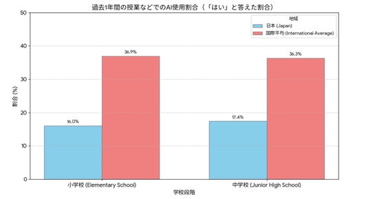 AIとの共存が当たり前となる中で、子どもたちにはAIを活用した新たな価値創造力が求められています。また、現在の日本は小中学校におけるAI活用度が国際平均と比べて大きく遅れをとっていることも事実です。