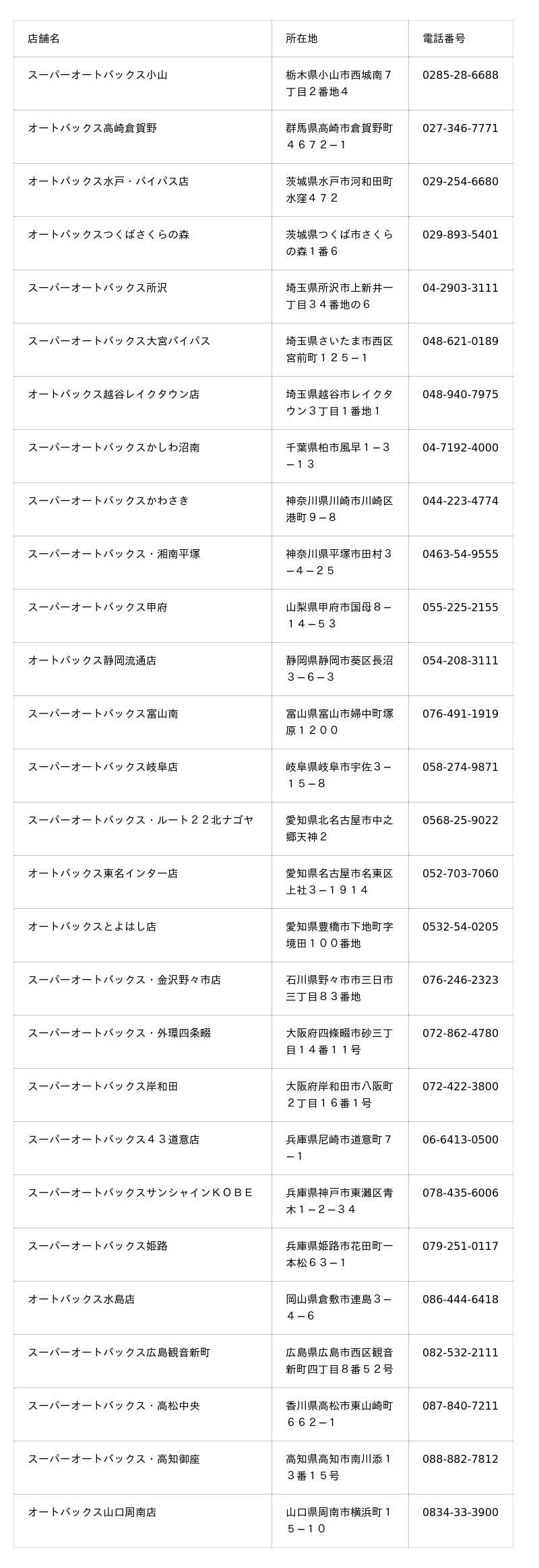オートバックスお客様相談センターフリーコール:0120-454-771