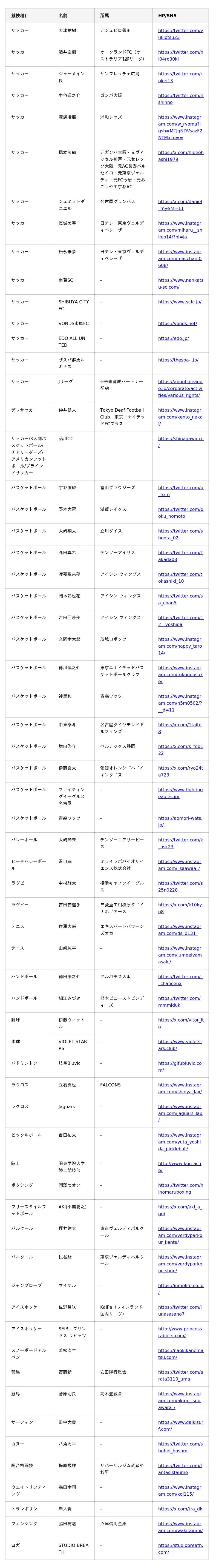 <BASE UP SPORTS サプライヤー契約一覧(現時点)>