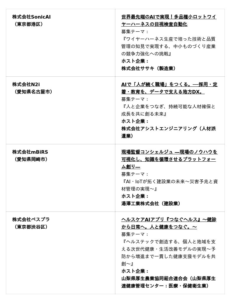 ■『STARTUP YAMANASHI OPEN INNOVATION PROGRAM 2025』採択結果