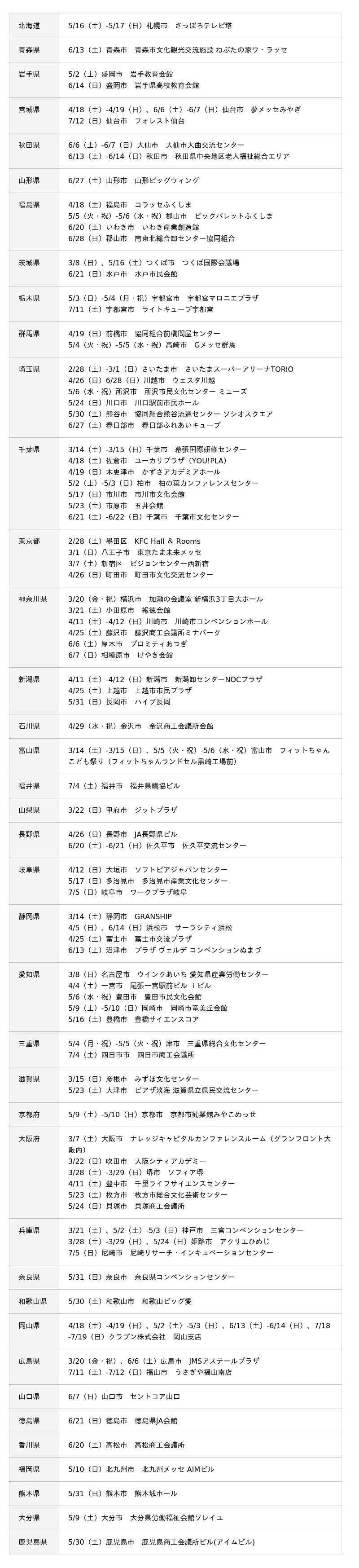 2027年度ご入学者様向け出張展示会一覧