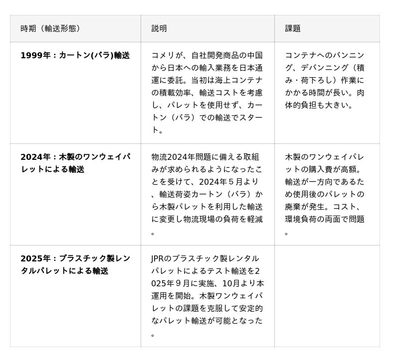 コメリと、日本通運は2025年10月にレンタルパレットによる国際間の一貫パレチゼーションを開始しました。