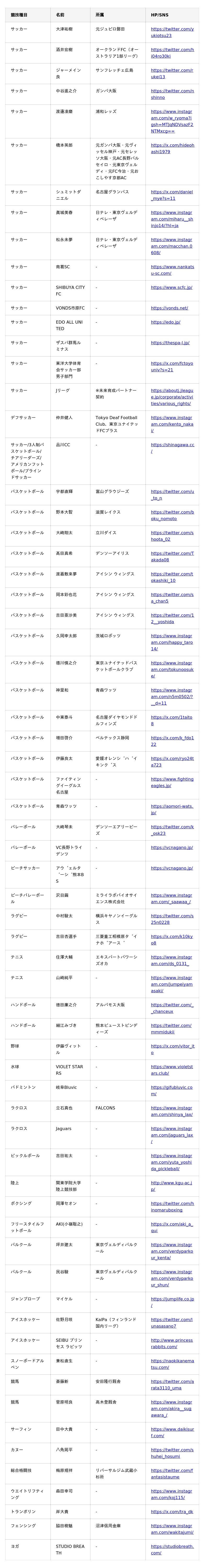 <BASE UP SPORTS サプライヤー契約一覧(現時点)>