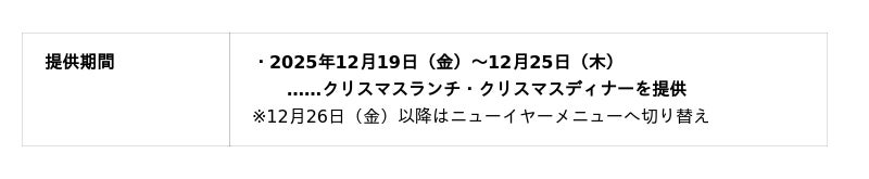 【2025年 クリスマスメニュー概要】