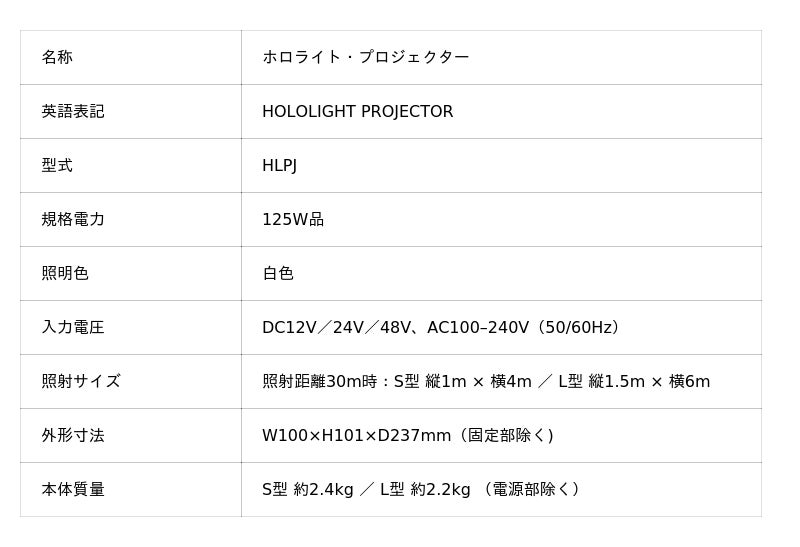 本製品は、従来の「ホロライト・マトリクス・シリーズ」とは異なり、高精細な光パターン表示や漢字を含む文字投影、スクロール表示、同一光源からの複数パターン表示が可能な点を特長としています。用途や設置環境に応じて投影パターンを自由に選択でき、より柔軟で分かりやすい注意喚起を実現します。また、安全対策用途にとどまらず、生産ライン変更時の作業指示表示や、エンターテインメント分野における演出用途など、幅広いシーンでの活用を想定しています。