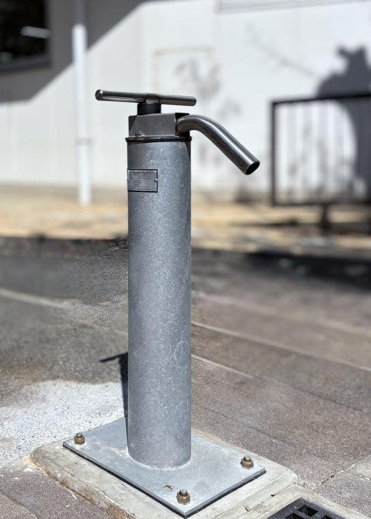 小櫛探鉱鑿泉株式会社過酷な自然環境下で長年使用されてきた、仏・Vergnet Hydro社製の深井戸用人力ポンプ。安全性・操作性・耐久性・デザイン性を兼ね備え、2025年品川区内小学校に防災井戸として設置しました。