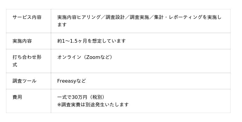 HONEでは「仮説構築~調査設計~実施~ローデータの提供~レポーティング(示唆出し)」までをパッケージ化いたしました。弊社にてまるっと代行いたしますので気になる方はお気軽にお申し付けください。
