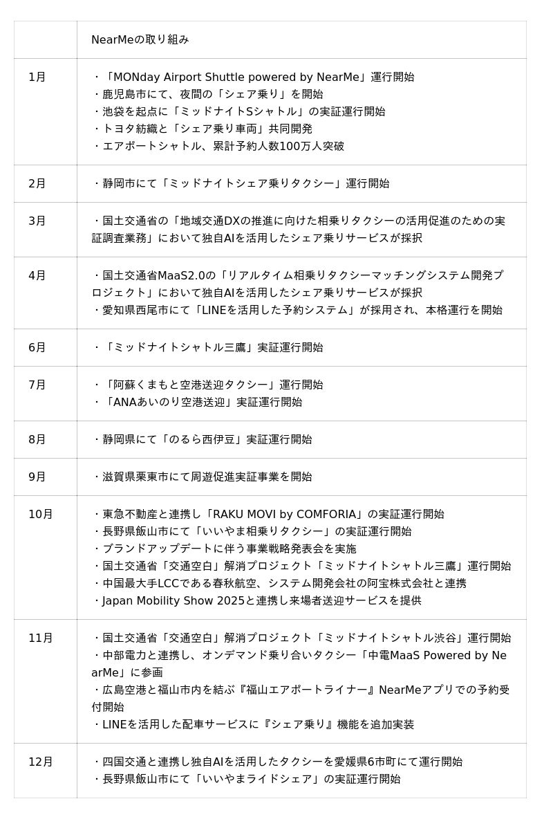 株式会社NearMe「交通空白解消・集中対策期間」初年度として位置づけられた2025年~社会課題としての移動に向き合うNearMeの2025年の歩み~
