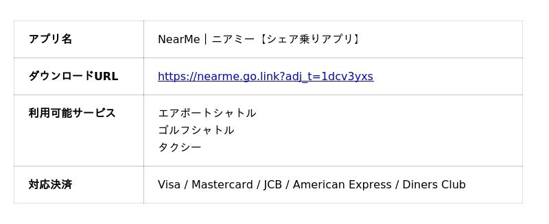 「NearMe」は、独自のAIを活用した最適なルーティングで、出発地から目的地までの移動をドアツードアで結ぶタクシーのシェアサービスです。その中でも、空港とその周辺の都市部を結ぶ空港送迎型の『エアポートシャトル』は、2019年8月のサービス開始から、 多くの方にご利用いただき、累計予約人数125万人※1を達成しました。現在は、全国16の空港※2(羽田空港、成田空港、伊丹空港、関西空港、新千歳空港、中部国際空港、福岡空港、那覇空港、旭川空港、帯広空港、青森空港、仙台空港、静岡空港、南紀白浜空港、徳島空港、北九州空港)と、空港周辺の都市部でご利用いただくことができます。対象エリアであれば、出発地となるご自宅から空港、そして空港から最終目的地まで一気通貫でつながるため、公共交通機関の乗り換えがなくなるなど、ストレスフリーな移動体験を提供することができます。また、貸切送迎サービスや、東京都と千葉県全域のゴルフ場と東京都23区内を結ぶゴルフシャトルなど、シチュエーションに応じて様々な移動のニーズに対応するための各種サービスを展開しています。