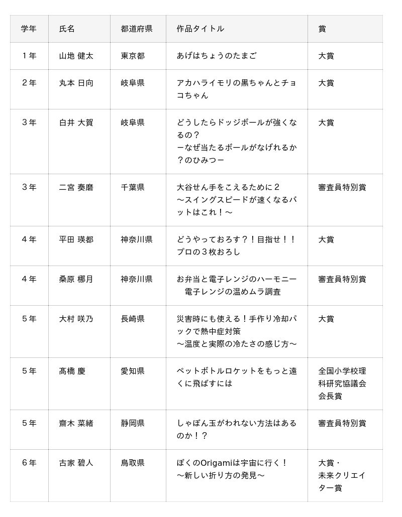 今年は、AIやテクノロジーをテーマにした作品も多くみられ、子供たちのあたらしい試みに未来を切り開く力を感じました。また、専門的な視点を取り入れたレベルの高い作品が多く、審査が難しい年でした。