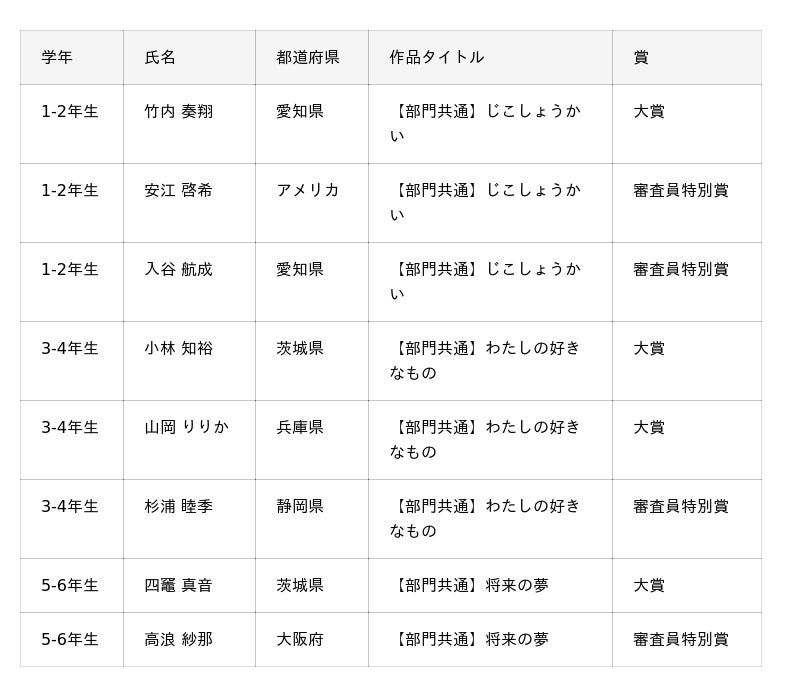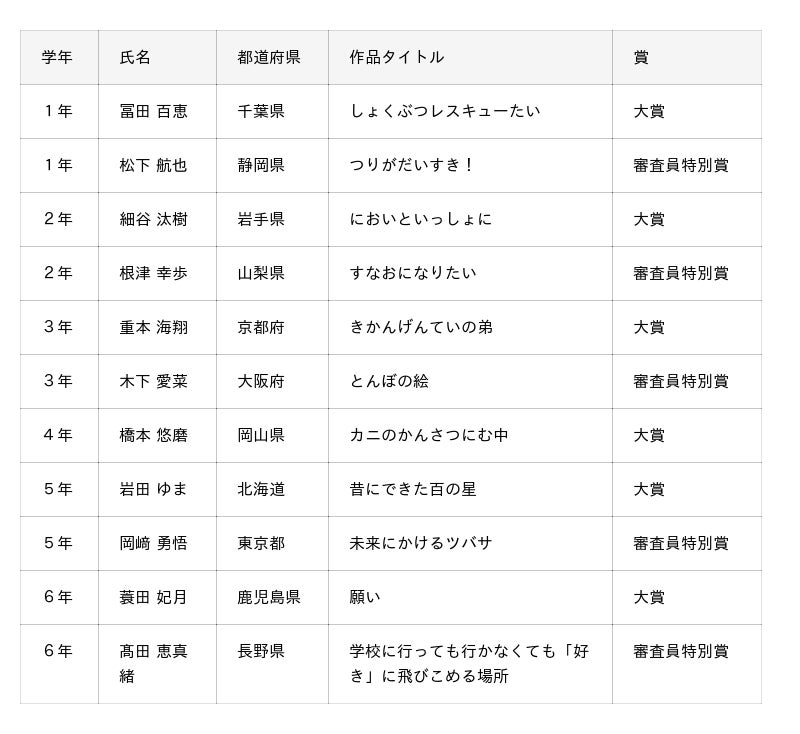 株式会社ベネッセコーポレーション全国の小学生9,665件の応募作品から大賞26作品 審査員特別賞20作品を表彰