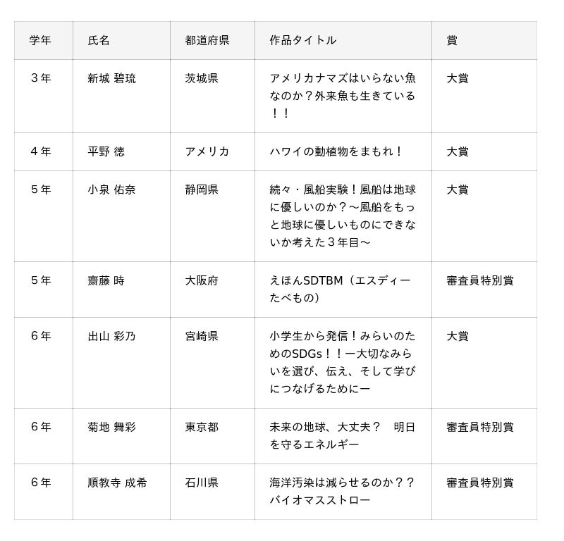 <第22回 全国小学生『未来』をつくるコンクール受賞作品>