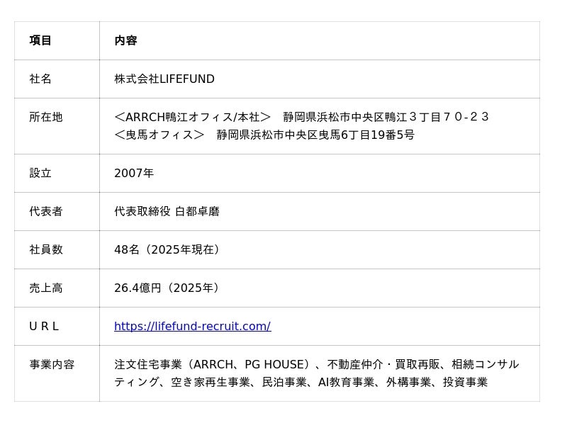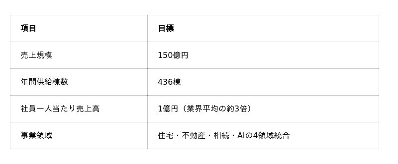 同社は2026年1月26日開催の「経営方針発表2026」において、今後10年間の事業ビジョンと長期戦略をまとめた「LIFEFUND BLUEPRINT 2036」を発表する。2036年までに売上150億円、年間供給棟数436棟、社員一人当たり売上1億円という目標を掲げ、住宅・不動産・相続・AI(人工知能)の4領域を高度に統合したビジネスモデルで、人口減少時代の地域課題を包括的に解決していく。