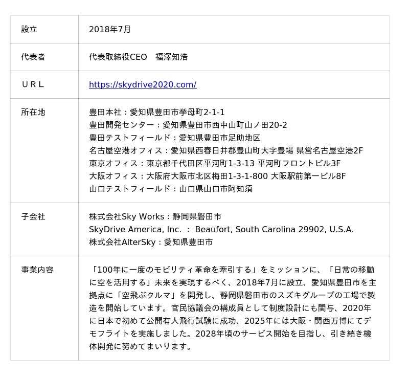 ≪株式会社SkyDrive 概要≫