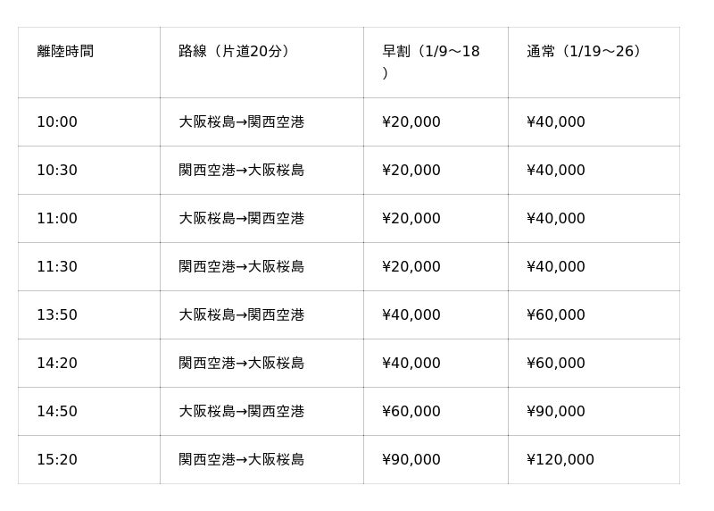 コース:関西国際空港⇄大阪桜島臨時離着陸場