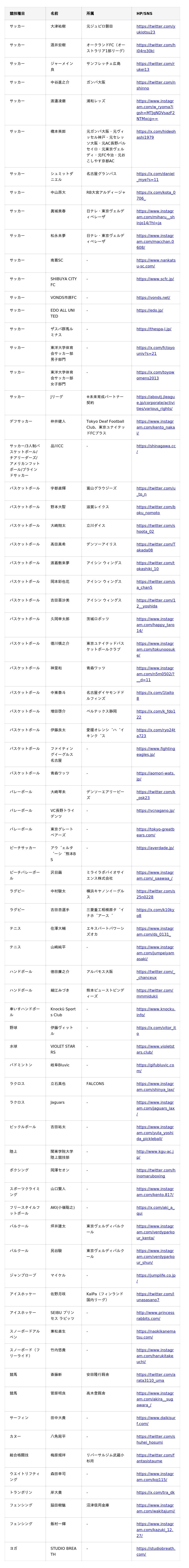 <BASE UP SPORTS サプライヤー契約一覧(現時点)>