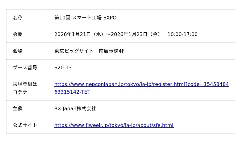ヘルツ電子、「第10回 スマート工場 EXPO」出展のお知らせ【1/21~1/23】