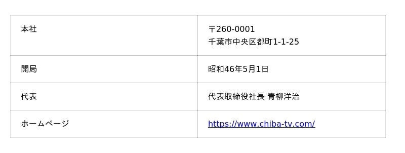 千葉テレビ放送株式会社(チバテレ)は千葉県を放送エリアとする放送局です。地域情報番組「ちば朝ライブ モーニングこんぱす」の他、スポーツ中継などを中心に放送しています。