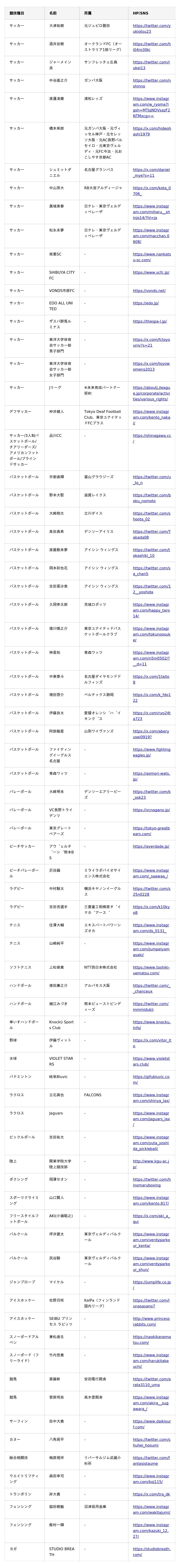 <BASE UP SPORTS サプライヤー契約一覧(現時点)>