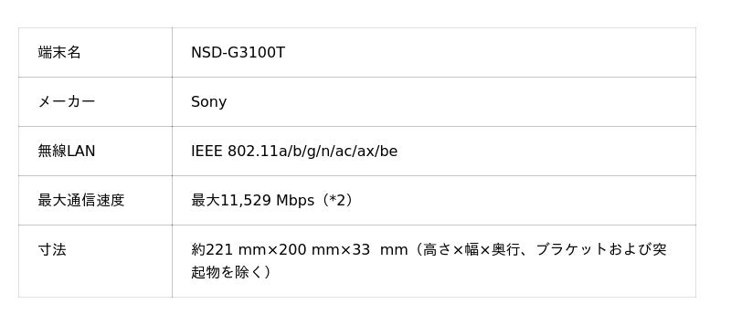 Wi-Fi 7対応ソニー製ONU(NSD-G3100T)について