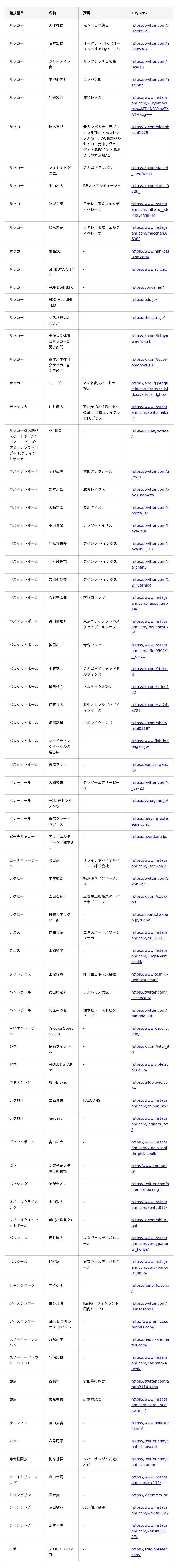 <BASE UP SPORTS サプライヤー契約一覧(現時点)>