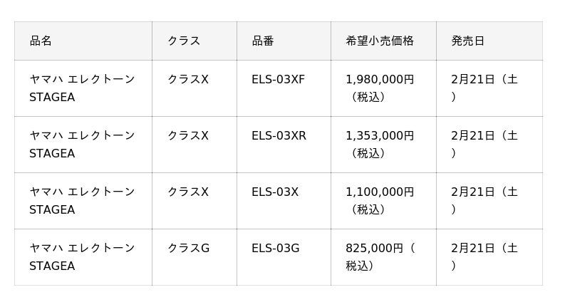 ヤマハ株式会社(以下、当社)は、エレクトーン「STAGEA(ステージア)」の新製品として、『ELS-03シリーズ』を2月21日(土)に発売します。